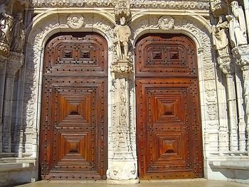 Монастырь Jerónimos — главный пример архитектуры в стиле Manueline, этот стиль уникален для Португалии, которая объединяет Яркий Готический стиль, мавританские, и ранние, относящиеся к эпохе Возрождения влияния. Стиль Manueline характеризуется тщательно продуманным использованием скульптурной детали и часто включает морские мотивы. Другие известные элементы стиля Manueline в Португалии включают Монастырь Batalha и Тамплиера Конванто де Кристо в Tomar.